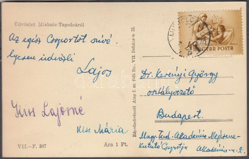 Beschreibung: Kiss Lajos népzene kutató saját kézzel írt képeslapja