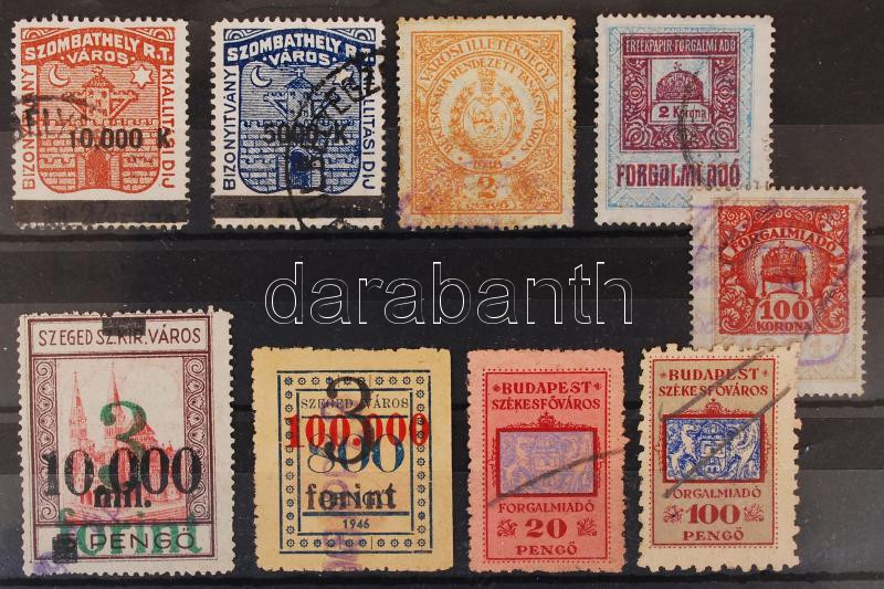 9 db magyar városi okmánybélyeg https://www.darabanth.com/de/213-Fernauktion/213.0/Andere-Sammelgebiete/Stempelmarken~22/9-db-magyar-varosi-okmanybelyeg~II891954