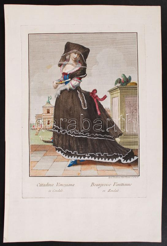 Velencei hölgy, színezett rézmetszet, 20x28 cm https://www.darabanth.com/de/213-Fernauktion/213.0/Andere-Sammelgebiete/Stich~2/Velencei-holgy-szinezett-rezmetszet-20x28-cm~II891986