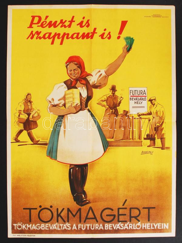 cca 1930-1940 Futura tökmagbeváltás reklámplakátja, kőnyomat, Klösz ny... https://www.darabanth.com/de/213-Fernauktion/213.0/Andere-Sammelgebiete/Werbungen~32/cca-1930-1940-Futura-tokmagbevaltas-reklamplakatja-konyomat-Klosz-nyomda-42x58-cm-3Cbr3E~II884548