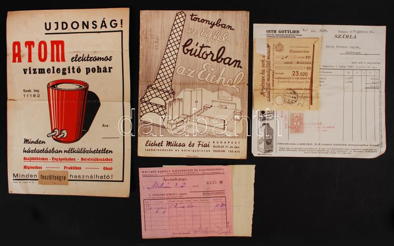 cca 1930-1940 Reklám nyomtatvány, számlák (Eichel Miksa, Voith Gottlie... https://www.darabanth.com/de/213-Fernauktion/213.0/Andere-Sammelgebiete/Werbungen~32/cca-1930-1940-Reklam-nyomtatvany-szamlak-Eichel-Miksa-Voith-Gottlieb-Wollner-Karoly-Atom-e~II890879