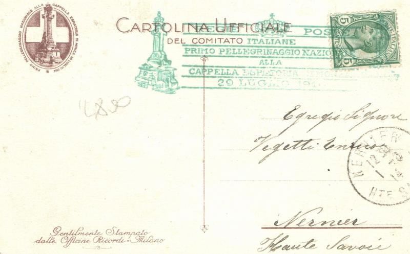 1914 Primo Pellegrinaggio Nazionale Alla Cappella Espiatoria di Monza / first national pilgrimage, Expiatory Chapel, So. Stpl. s: C. Fontana
