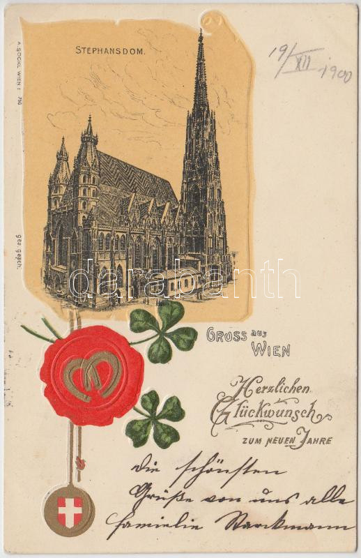 Vienna, Wien I. Stephansdom / church, seal, clover Emb. litho (EK) https://www.darabanth.com/de/213-Fernauktion/213.0/Ansichtskarten/Osterreich~600358/Vienna-Wien-I-Stephansdom-church-seal-clover-Emb-litho-EK~II890168