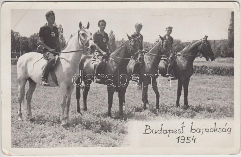 1954 Budapest bajnokság / Budapest horse race, photo https://www.darabanth.com/de/213-Fernauktion/213.0/Ansichtskarten/Pferde~600399/1954-Budapest-bajnoksag-Budapest-horse-race-photo~II891492