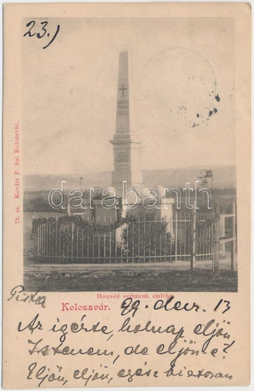 Kolozsvár, Honvéd vértenúk emléke, kiadja Kováts P. fiai (EK) https://www.darabanth.com/de/213-Fernauktion/213.0/Ansichtskarten/Siebenburgen~400007/Kolozsvar-Honved-vertenuk-emleke-kiadja-Kovats-P-fiai-EK~II891197