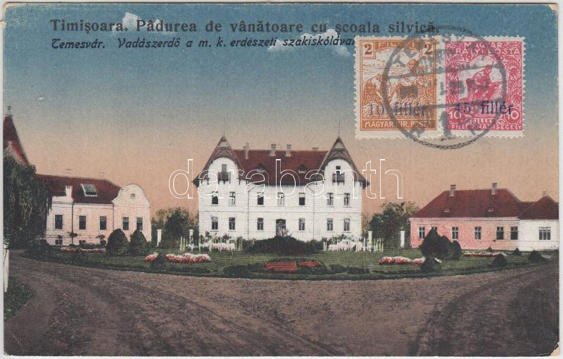 Temesvár, Vadászerdő a magyar királyi erdészeti szakiskolával / huntin... https://www.darabanth.com/de/213-Fernauktion/213.0/Ansichtskarten/Siebenburgen~400007/Temesvar-Vadaszerdo-a-magyar-kiralyi-erdeszeti-szakiskolaval-hunting-forest-forestry-schoo~II891632