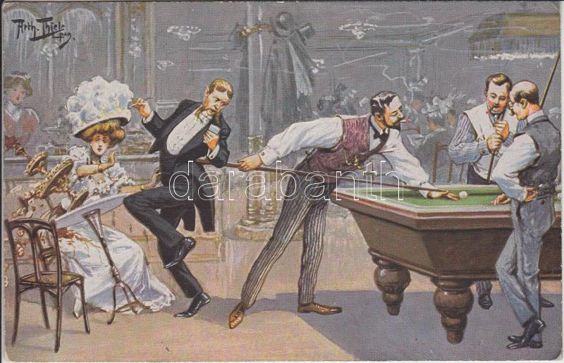 Billiard room, humour Theo Stroefer Serie 1942. s: Arthur Thiele https://www.darabanth.com/de/213-Fernauktion/213.0/Ansichtskarten/Sport~600416/Billiard-room-humour-Theo-Stroefer-Serie-1942-s-Arthur-Thiele~II891482