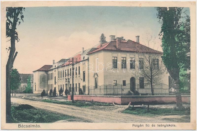 Bácsalmás, Polgári fiú és lány iskola https://www.darabanth.com/de/213-Fernauktion/213.0/Ansichtskarten/Ungarn~400006/Bacsalmas-Polgari-fiu-es-lany-iskola~II891265