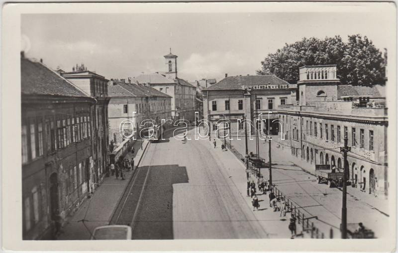 Beschreibung: Budapest II. Császár fürdő, villamos, teherautó