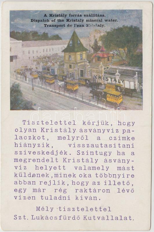 Beschreibung: Budapest II. Szent Lukács gyógyfürdő, Kristály forrás szállítása, reklám (EK)