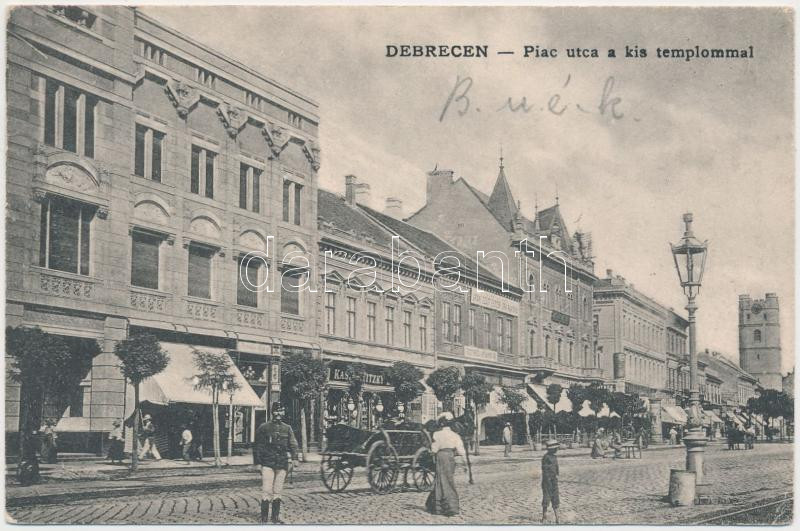 Beschreibung: Debrecen, Piac utca, kis templom, Függetlenségi '48' Baráti Kör, Arany, ezüst, ékszer, óra raktár, Aczél Henrik kiadása