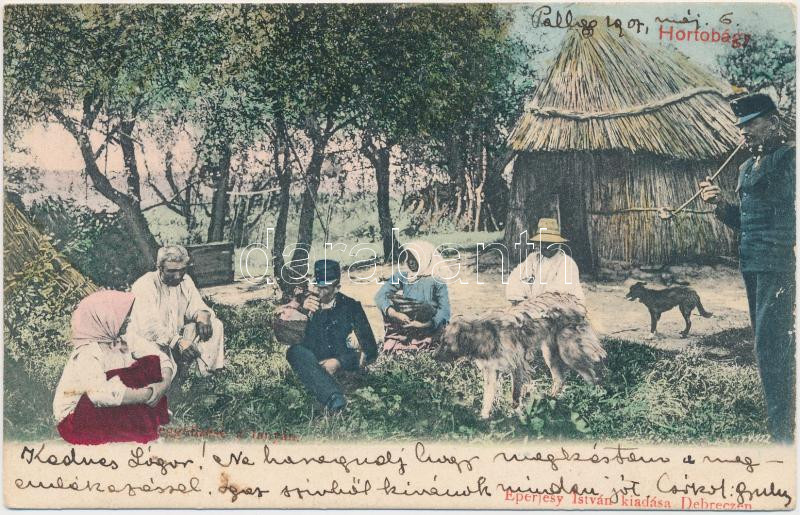 Beschreibung: Hortobágy, Reggelizés a tanyán, kiadja Eperjes István (EK)