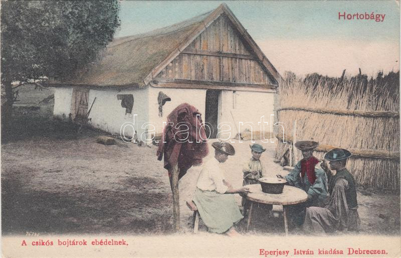 Hortobágy, csikós bojtárok ebédelnek, kiadja Eperjes István (EK) https://www.darabanth.com/de/213-Fernauktion/213.0/Ansichtskarten/Ungarn~400006/Hortobagy-csikos-bojtarok-ebedelnek-kiadja-Eperjes-Istvan-EK~II891425