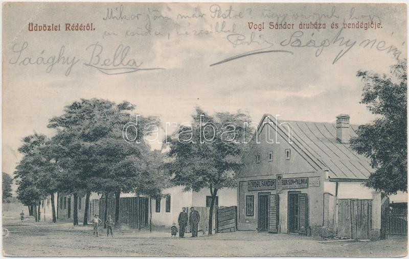 Réde, Vogl Sándor áruháza és vendéglője és kiadása (EK) https://www.darabanth.com/de/213-Fernauktion/213.0/Ansichtskarten/Ungarn~400006/Rede-Vogl-Sandor-aruhaza-es-vendegloje-es-kiadasa-EK~II891132