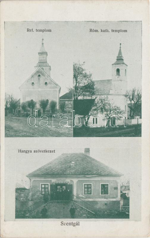 Szentgál, Református és katolikus templom, Hangya https://www.darabanth.com/de/213-Fernauktion/213.0/Ansichtskarten/Ungarn~400006/Szentgal-Reformatus-es-katolikus-templom-Hangya~II889984