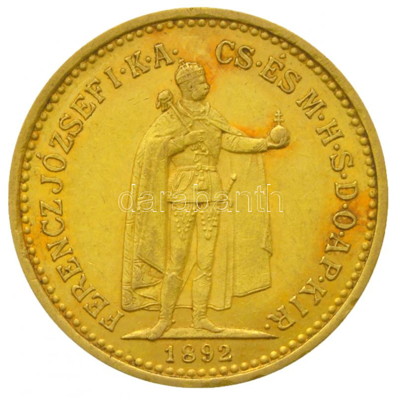 Hungary 1892. 10 Koron... https://www.darabanth.com/de/213-Fernauktion/213.0/Numismatik/Gold-Munzen~200011/1892KB-10K-Au-Ferenc-Jozsef-338g0900-T2-3Cbr3EHungary-1892-10-Korona-Au-Franz-Joseph-I-Kr~II887533