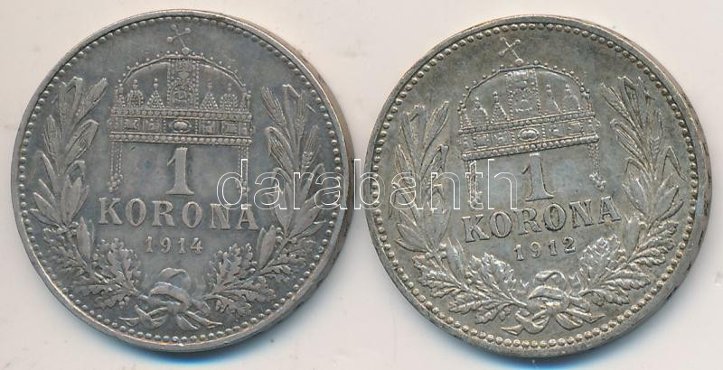 1912-1914. 1K Ag "Ferenc József" (2x) T:2,2- https://www.darabanth.com/de/213-Fernauktion/213.0/Numismatik/Ungarische-Munzen~200009/1912-1914-1K-Ag-Ferenc-Jozsef-2x-T2-2-~II887737