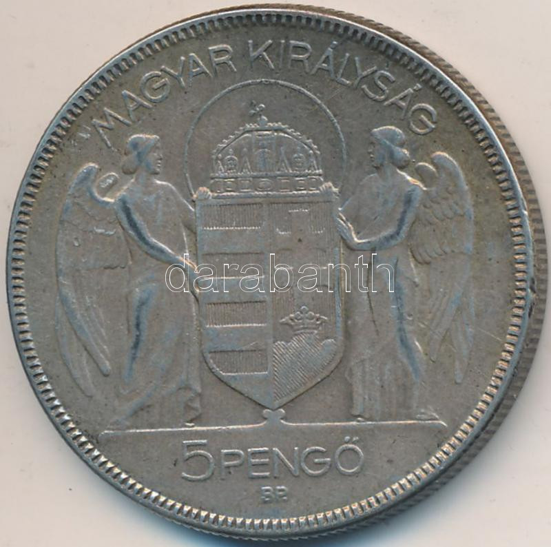 Beschreibung: 1930. 5P Ag "Horthy-jobbra" T:3