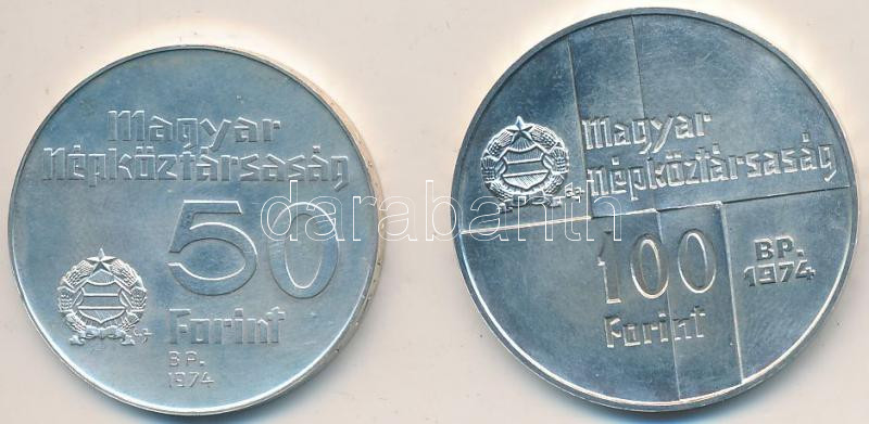 1974. 50Ft Ag + 100Ft Ag "MNB" pár T:BU https://www.darabanth.com/de/213-Fernauktion/213.0/Numismatik/Ungarische-Munzen~200009/1974-50Ft-Ag-plus-100Ft-Ag-MNB-par-TBU~II875565