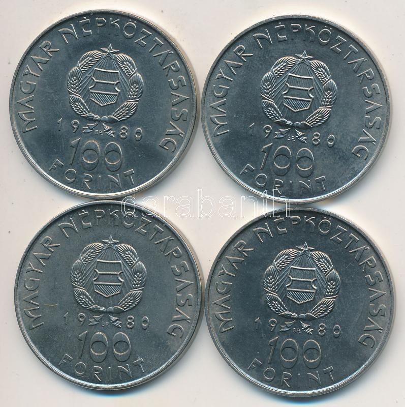 1980. 100Ft "Szovjet-magyar közös űrrepülés" (4x) T:BU https://www.darabanth.com/de/213-Fernauktion/213.0/Numismatik/Ungarische-Munzen~200009/1980-100Ft-Szovjet-magyar-kozos-urrepules-4x-TBU~II890028