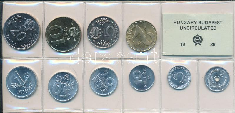 1986. 2f-20Ft 10db klf érmés forgalmi sor fóliatokban T:1 https://www.darabanth.com/de/213-Fernauktion/213.0/Numismatik/Ungarische-Munzen~200009/1986-2f-20Ft-10db-klf-ermes-forgalmi-sor-foliatokban-T1~II891208
