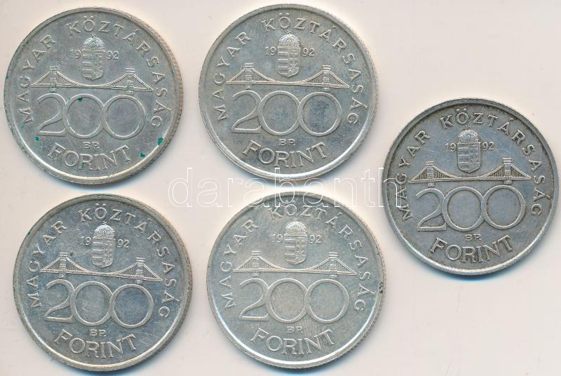 1992. 200Ft Ag "MNB" (5x) T:2,2-