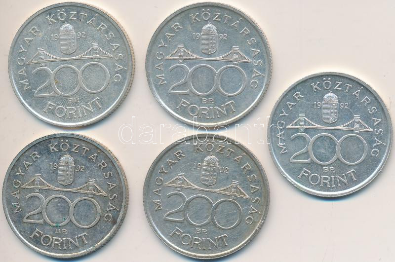 1992. 200Ft Ag "MNB" (5x) T:2,2-