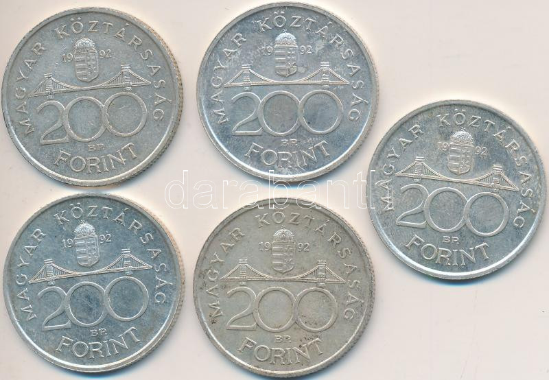 Beschreibung: 1992. 200Ft Ag "MNB" (5x) T:2,2-