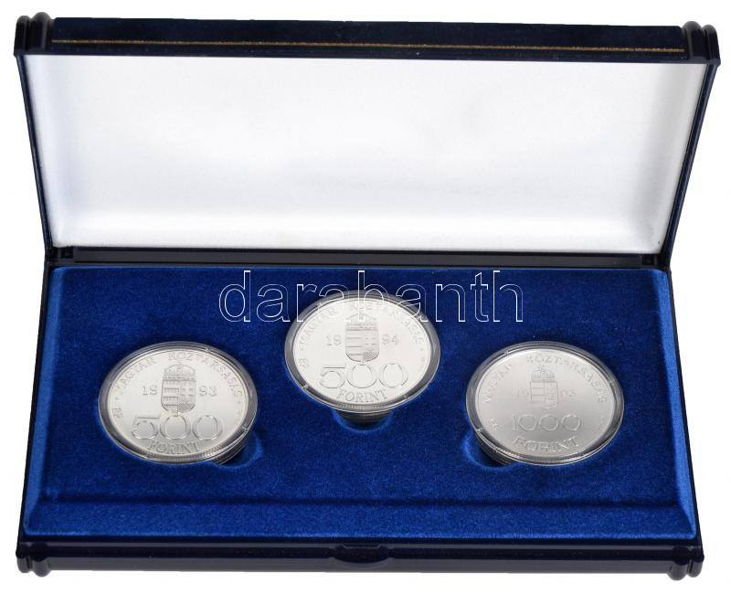 Beschreibung: 1993-1995. 500Ft Ag + 500Ft Ag + 1000Ft Ag "Integráció az EU-ba - ECU" sor díísztokban és tanúsítvánnyal T:BU