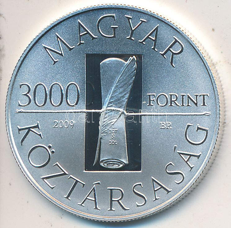 2009. 3000Ft Ag "Kazinczy Ferenc" tanúsítvánnyal T:PP https://www.darabanth.com/de/213-Fernauktion/213.0/Numismatik/Ungarische-Munzen~200009/2009-3000Ft-Ag-Kazinczy-Ferenc-tanusitvannyal-TPP~II875477