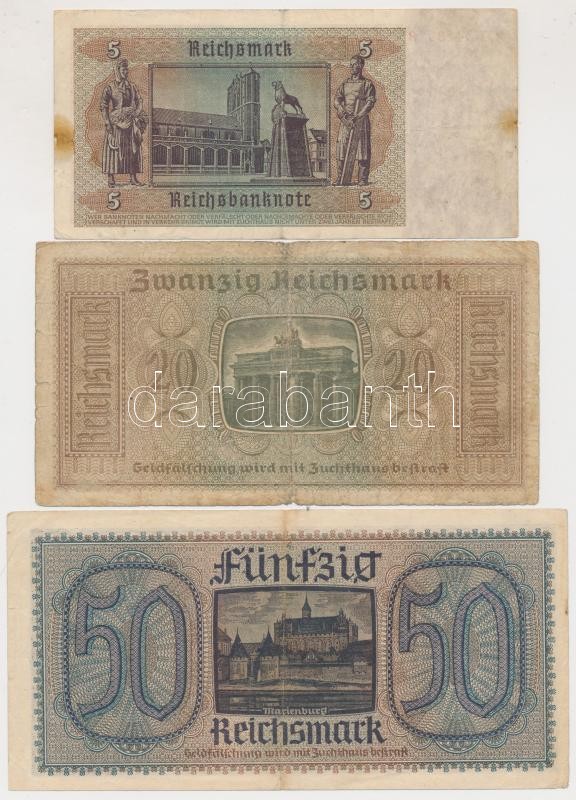 German ... https://www.darabanth.com/de/213-Fernauktion/213.0/Numismatik/Weltweit-Banknoten~200012/Nemet-3-Birodalom-1940-1945-5RM-plus-20RM-plus-50RM-TII-III-III--3Cbr3EGerman-Third-Reich-1940-1945-5~II891595