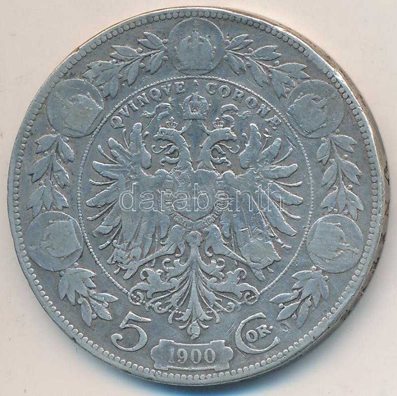 Austria 1900. 5 Corona Ag C:F https://www.darabanth.com/de/213-Fernauktion/213.0/Numismatik/Weltweit-Munzen~200013/Ausztria-1900-5K-Ag-T3-3Cbr3EAustria-1900-5-Corona-Ag-CF~II886847
