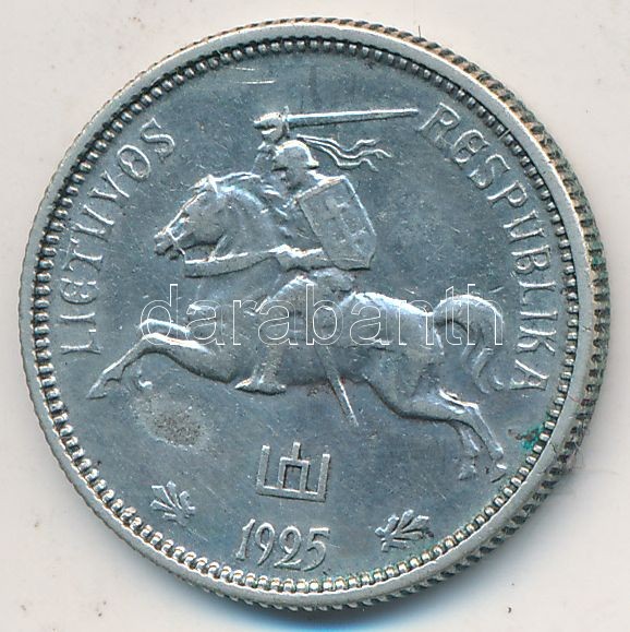 Krause KM# 77 https://www.darabanth.com/de/213-Fernauktion/213.0/Numismatik/Weltweit-Munzen~200013/Litvania-1925-2L-Ag-T2-3Cbr3ELithuania-1925-2-Litu-Ag-CXF-3Cbr3EKrause-KM23-77~II891114