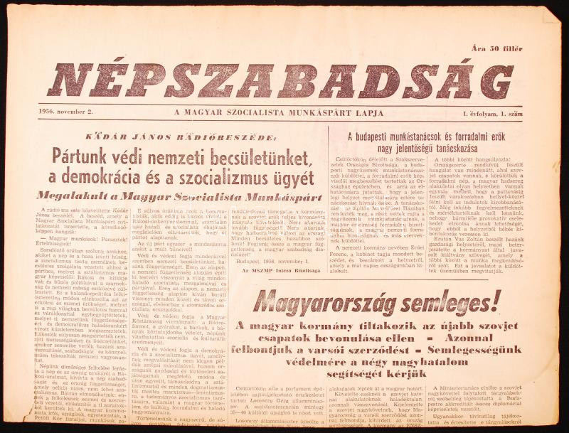 1956 Népszabadság c. lap november 2. száma a forradalom híreivel, indu... https://www.darabanth.com/de/214-Fernauktion/214.0/Andere-Sammelgebiete/Drucksachen~29/1956-Nepszabadsag-c-lap-november-2-szama-a-forradalom-hireivel-indulo-szama~II897004