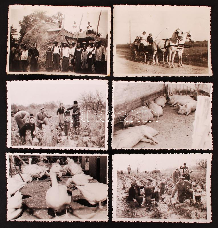 Beschreibung: cca 1939-1950 6db fotó a vidéki életről, (cséplés, szüret, lovaskocsi), 9x 6 cm