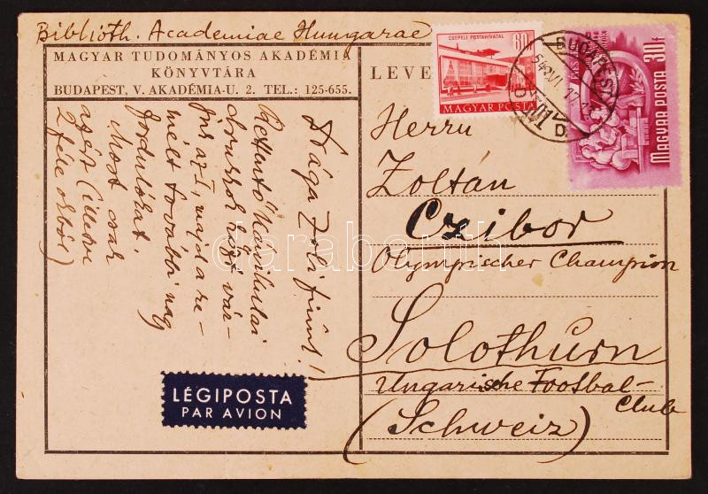 1954 Futball VB, Czibor Zoltán édesapja által küldött levél Zoltánnak,... https://www.darabanth.com/de/214-Fernauktion/214.0/Andere-Sammelgebiete/Historische-Dokumenten-Handschriften~19/1954-Futball-VB-Czibor-Zoltan-edesapja-altal-kuldott-level-Zoltannak-erdekes-keresekkel~II896966