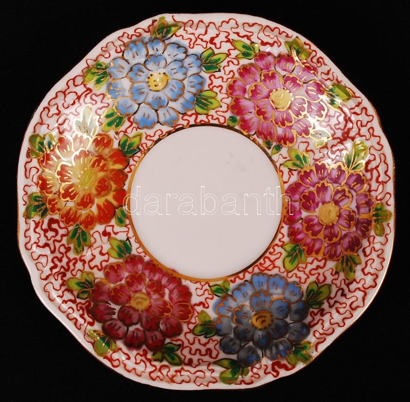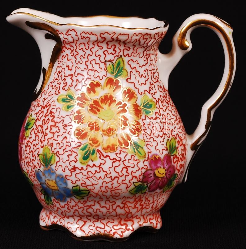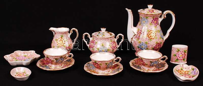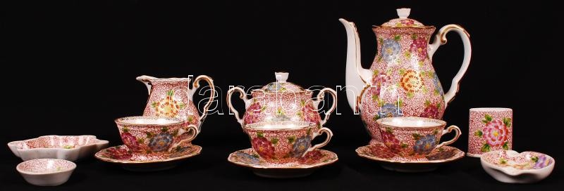 Beschreibung: Orbán Gizi által festett hiányos mokkás készlet kiegészítőkkel, kézzel festett, jelzett, hibátlan