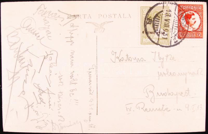 Beschreibung: 1933 A Fradi focistái által küldött és aláírt képeslap Temesvárról