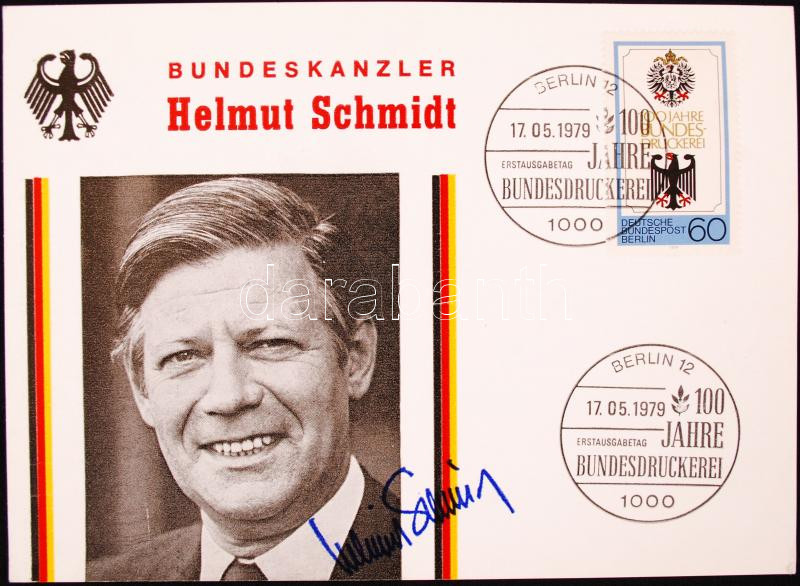 Helmut Schmidt (1918-) német szövetségi kancellár aláírása levelezőlap... https://www.darabanth.com/de/214-Fernauktion/214.0/Andere-Sammelgebiete/Signatur~20/Helmut-Schmidt-1918-nemet-szovetsegi-kancellar-alairasa-levelezolapon~II896065