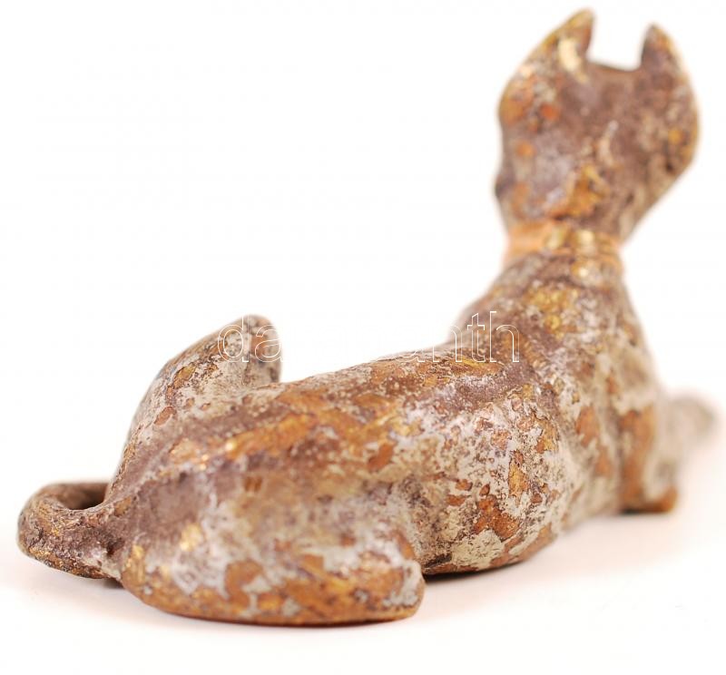 Beschreibung: Antik mini bronz kutya figura / Miniature bronze cat figure 6 cm