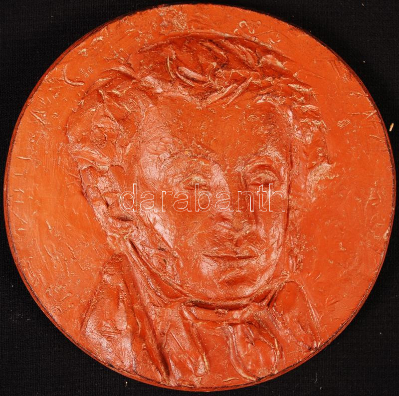 Zicherman Sándor (1935-): Puskin. Terrakotta, d:10,5 cm