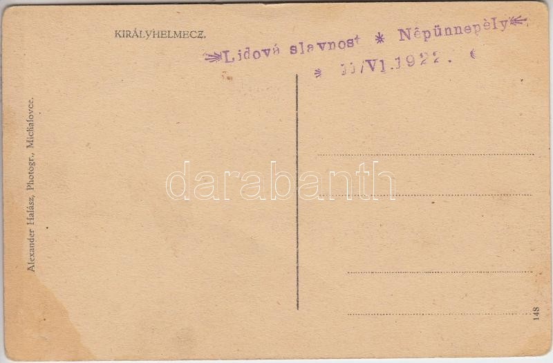 Királyhelmec, Főtér, Királyhelmeci gazdasági és kereskedelmi bank, valutaváltó, katolikus templom / bank at the main square, exchange office, catholic church 'Lidová slavnost / Népünnepély 1922' seal on backside