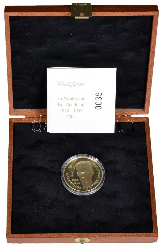 Belgium 2003. "Baldvin 1930-1993" Au emlékérem dísztokban tanúsítvánnyal (11g/0.750/30mm) T:PP