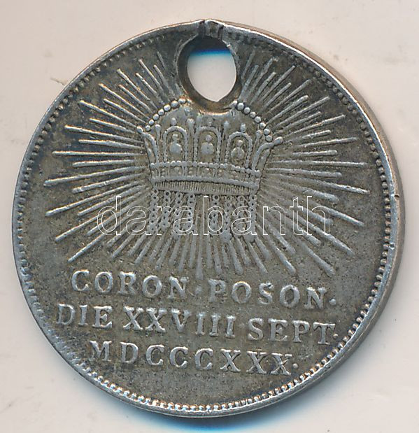 Habsburg Monarchy / Bratislava 28 September 1830. Coronation Silver Jeton Ag "Franz I - Ferdinand V" (5.42g) C:VF hole, edge error