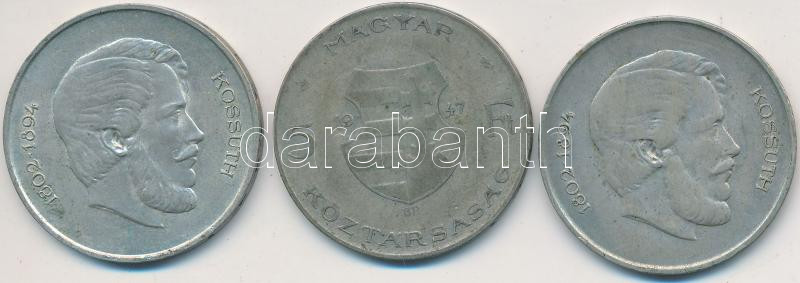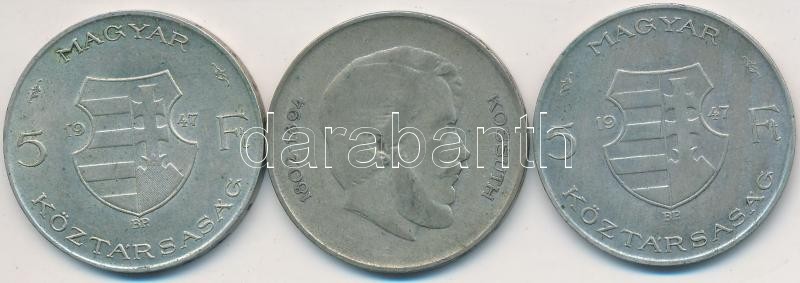 1947. 5Ft Ag "Kossuth" (3x) T:2-,3 https://www.darabanth.com/de/214-Fernauktion/214.0/Numismatik/Ungarische-Munzen~500008/1947-5Ft-Ag-Kossuth-3x-T2-3~II868103