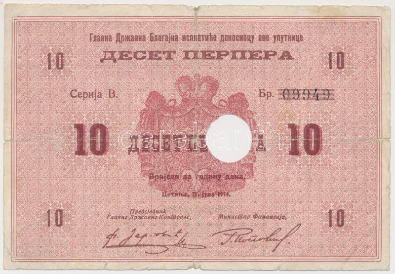 Montenegro 1914. 10 Perpera hol... https://www.darabanth.com/de/214-Fernauktion/214.0/Numismatik/Weltweit-Banknoten~500011/Montenegro-1914-10P-lyukasztott-TIII-3Cbr3EMontenegro-1914-10-Perpera-holes-CF-3Cbr3EKrause-10~II892972
