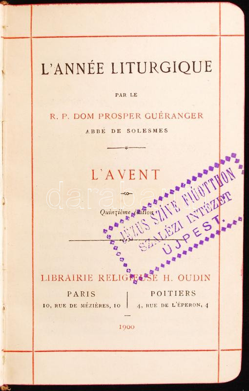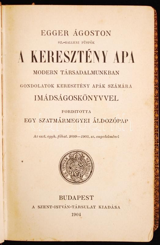 3 imakönyv, 2 bőr kötésben-Egger Ágoston: A keresztény apa modern társadalmunkban. Bp., 1904, Szent István Társulat; L'Anné Liturgique. Paris, 1900. Páduai Szent Antal imakönyv. Bp., 1900, Rózsa K. és Neje. Kissé kopottas állapotban.