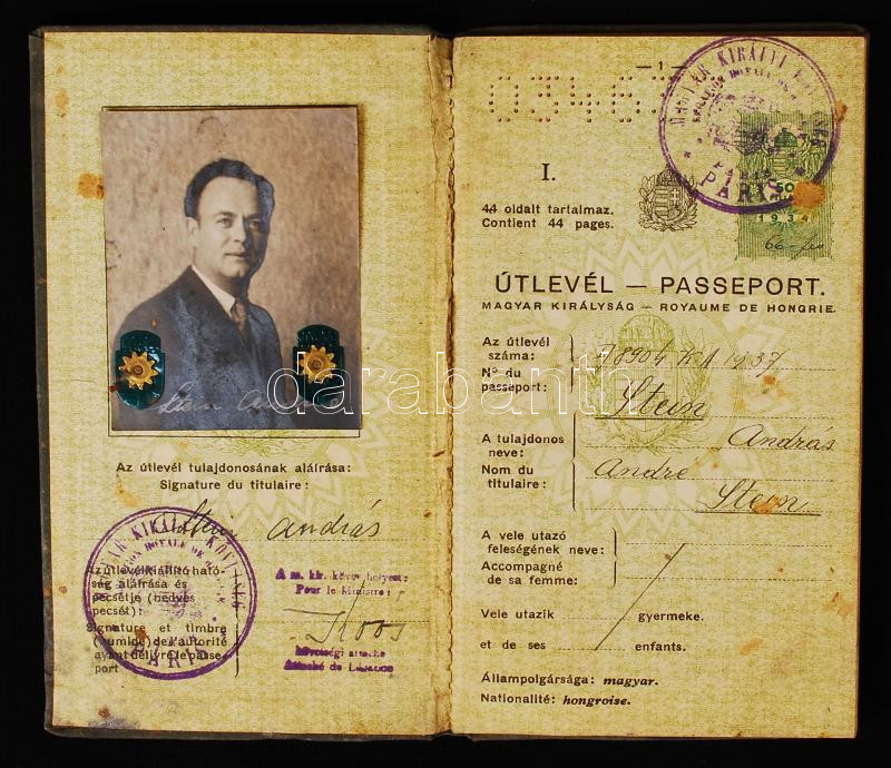 1938 Hungar... https://www.darabanth.com/de/215-Fernauktion/215.0/Andere-Sammelgebiete/Dokument~27/1938-Magyar-Kiralysag-altal-kiallitott-fenykepes-utlevel--3Cbr3E1938-Hungarian-passport~II903121