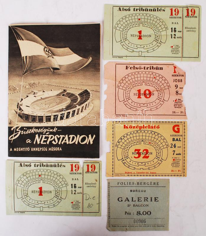 1953 "Büszkeségünk a Népstadion", a megnyitó ünnepség műsora, 24p, 5 d... https://www.darabanth.com/de/215-Fernauktion/215.0/Andere-Sammelgebiete/Drucksachen~12/1953-Buszkesegunk-a-Nepstadion-a-megnyito-unnepseg-musora-24p-5-db-belepo~II902180