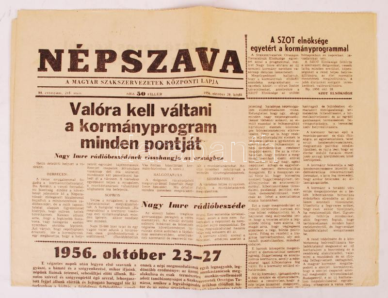 1956 A Népszava október 29-iki száma a forradalom híreivel https://www.darabanth.com/de/215-Fernauktion/215.0/Andere-Sammelgebiete/Drucksachen~12/1956-A-Nepszava-oktober-29-iki-szama-a-forradalom-hireivel~II901256